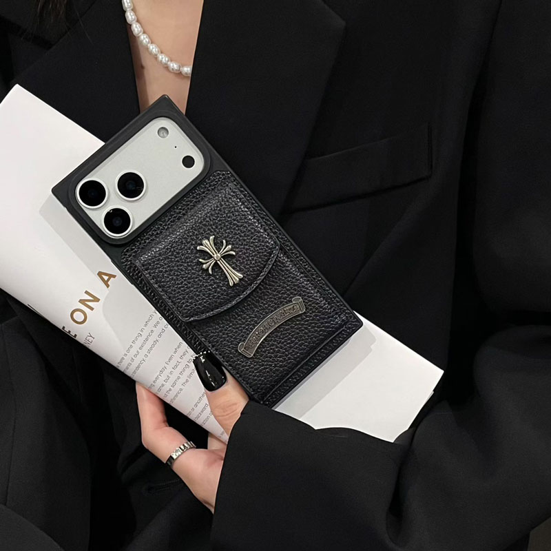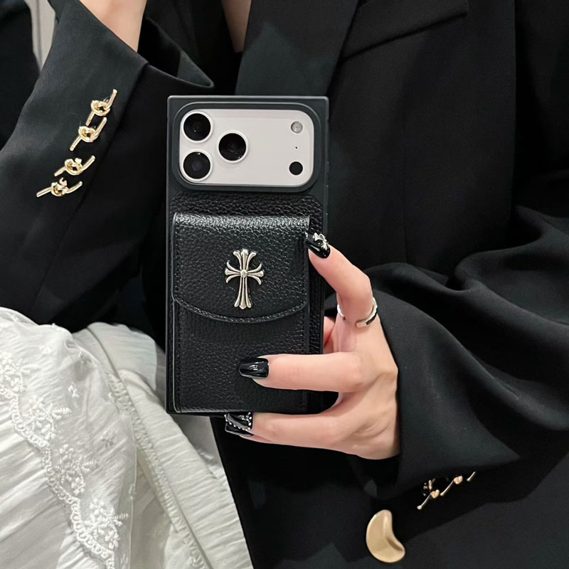 クロムハーツ iphone17 pro/17 pro maxケース6枚カード収納アイフォン16プロケース潮流個性 iphone15 14 pro maxケースオシャレ大人気メンズレディース