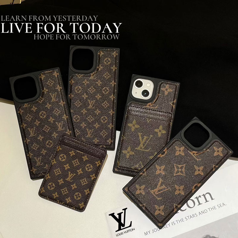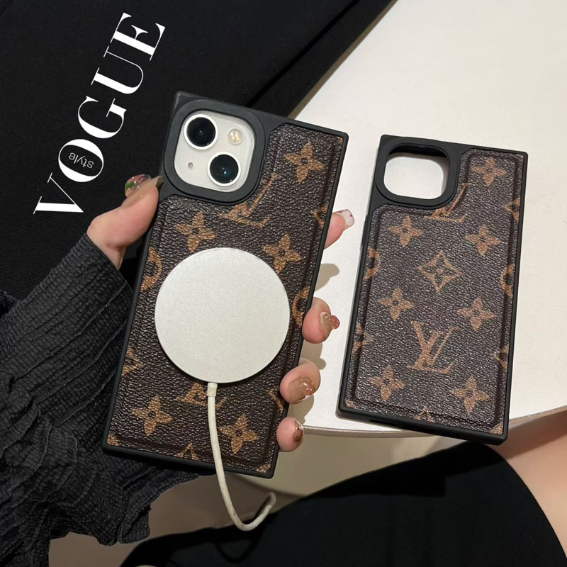 ルイヴィトン iphone 17 pro/16 proケースマグネット式カードポケット付きiphone 15 pro max携帯カバーヴィトン四角型 iphone14 13 プロケースオシャレモノグラムmagsafe充電可能レザー製高級感