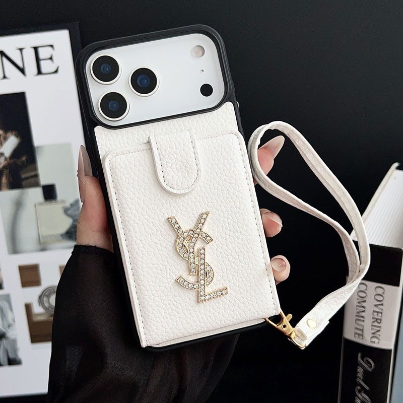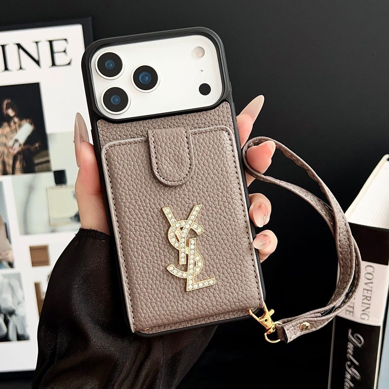 サンローラン iphone 17 proケースカード収納ショルダーストラップ付きiphone 16pro/15 pro携帯カバーYSL iphone14 13 proスマホケース高級シンプルオシャレレザー製耐衝撃性